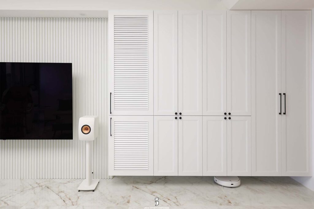 運用大面積白色的櫃體弱化量感,